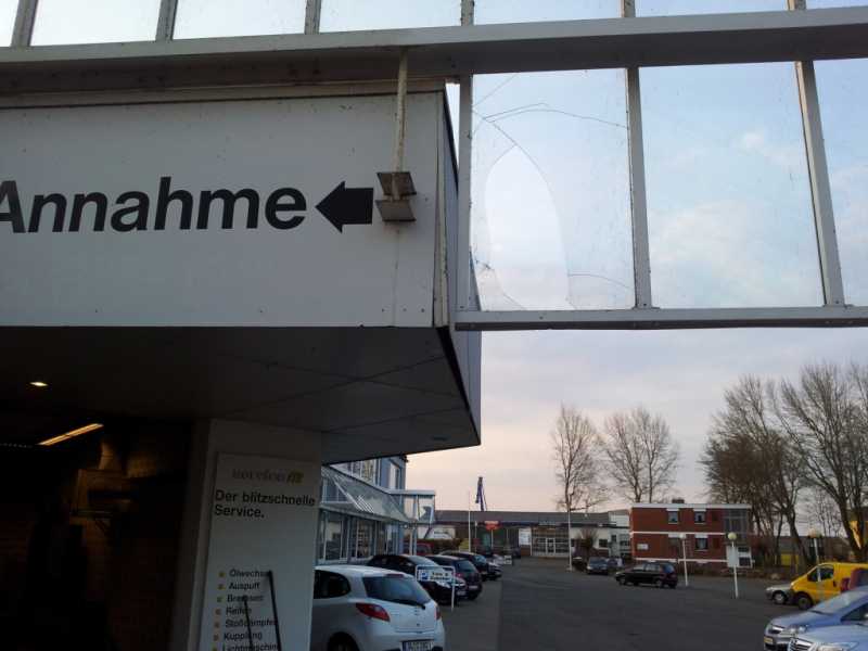 Wie jeden Morgen, wollte ich auf dem Weg ins Büro noch schnell beim Bäcker anhalten, um die obligatorischen belegten Brötchen für Bertha und mich abzuholen. Da das mit dem Wohnmobil aber etwas eng wird und man damit dort nicht wenden kann, entschloss ich mich, den Parkraum, der unter einer überdachten Passage liegt, von hinten, über den Werkstatthof einer Kfz-Werkstatt anzufahren.