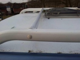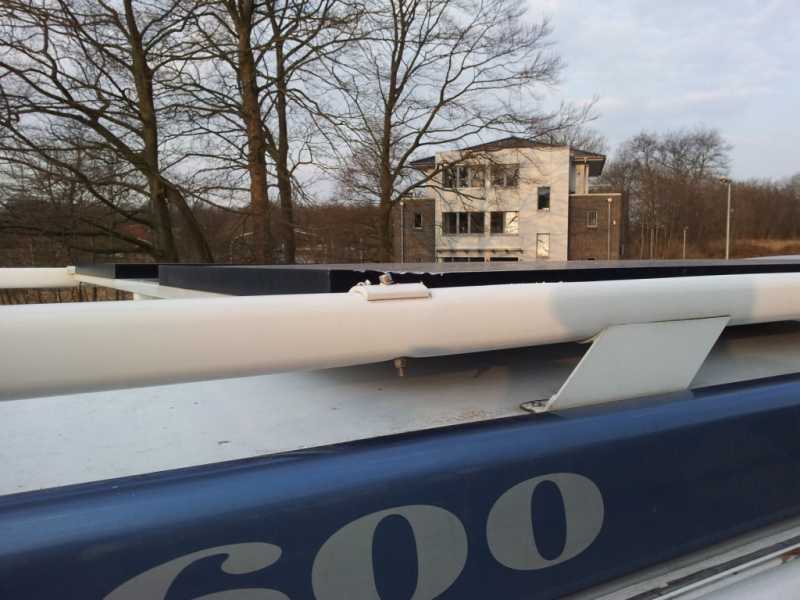 Das rechte Solarpanel und die Dachreling sind hinten rechts beschädgt, da ist richtig Druck von oben drauf gekommen. Augenscheinlich ist das Dach aber unbeschädigt geblieben, obwohl ich noch Bedenken habe, dass die Stütze der Dachreling sich eventuell ins Dach gedrückt haben könnte.