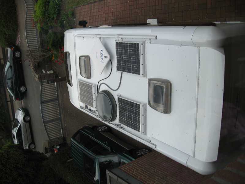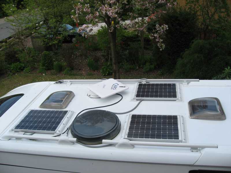 Die Solaranlage ist komplettiert, die drei Module a 50 W sind aufgeklebt.