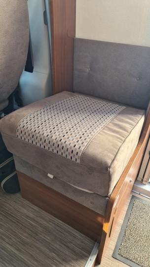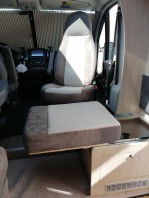 Super Idee. Wir haben auch diesen Sitz und ähnlich umgerüstet. Beladung von oben, da gehen dann reichlich Getränke rein. Mittlerweile sitzt an der linken Wand der Wechselrichter und drüber das Steuergerät für Tank O3.