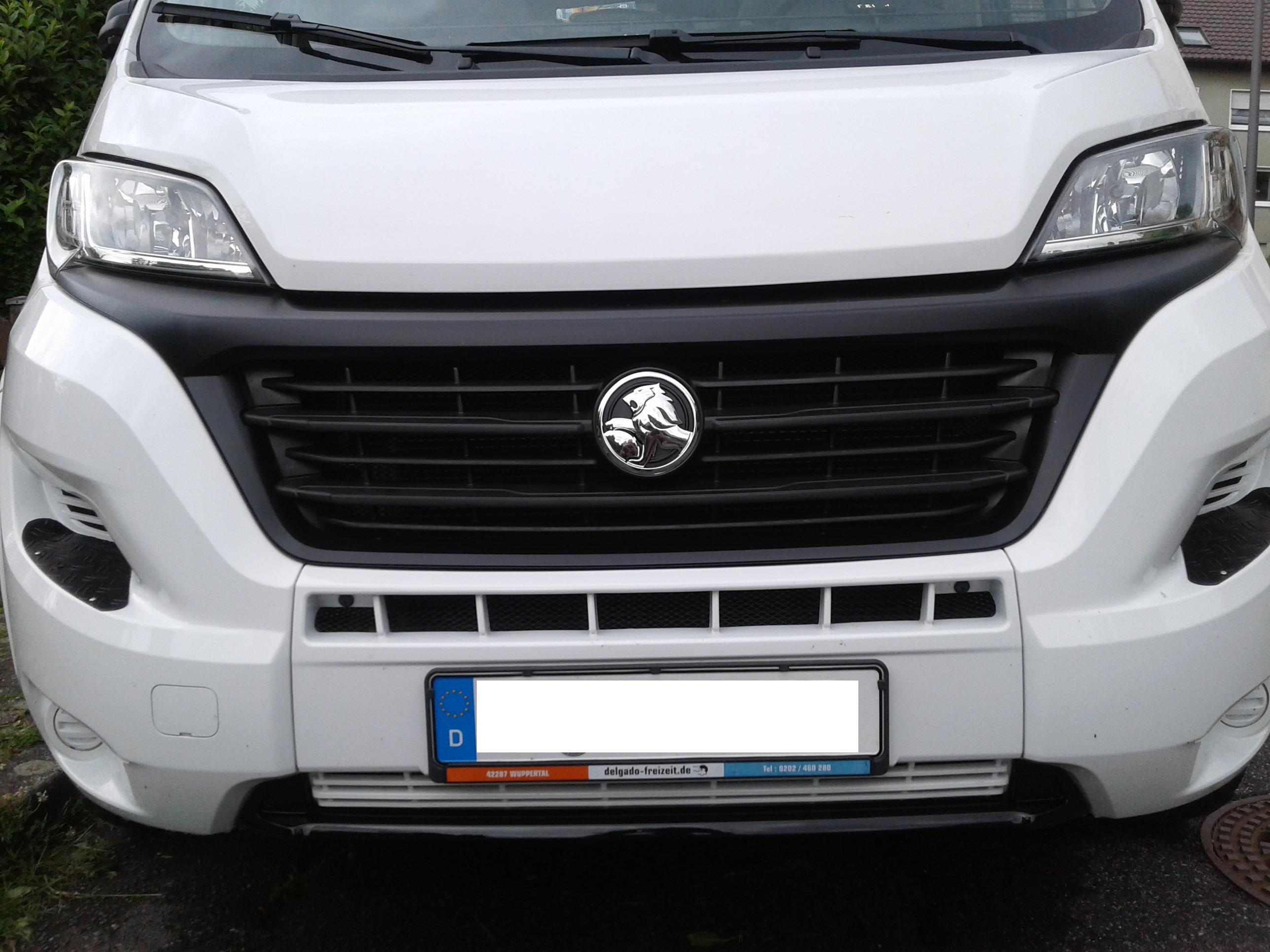 ich habe an unserem HOOE die verchromte Zitronen-Optik (Kühlergrill, Scheinwerfer) gegen ein dunkles Ducato-Gesicht getauscht. Die benötigten Teile gibt es zwar als KIT im Internet-Versand. Dieses war mir allerdings etwas zu hochpreisig. Daher habe ich mir auch Gebrauchtteile über Kleinanzeigen-Portale und Autoverwerter besorgt.