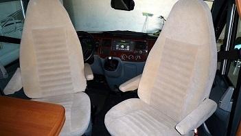 Die gezeigte Anordnung sieht prima aus ist jedoch bei den (Hobby-) Wohnmobilen auf (vorherigem) FORD-Transit (wie der VAN GFSC) und Drehsitz anders geregelt. Z.B. ist die Handbremse nicht im Mittelraum sondern links unten neben dem Fahrersitz angebracht . Insofern ist auch die gezeigte Türverkleidung links aufgrund der Platzverhältnisse nicht möglich. Die originale Ford-Verkleidung links mit integrierter kleiner Armlehne und Ablagefach gab es nur für normale Transite da hier die Handbremse wie üblich zwischen den Sitzen war .