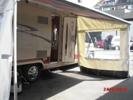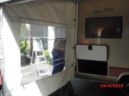 Wir haben das Vorzelt von guten Freunden als Einweihungsgeschenk für unser Hobby Premium Drive GE 70 bekommen. Es hat Vorteile. So kann man bei Wind die eine oder die andere Seite anbringen, oder ein ganzes Vorzelt anbauen. Ist natürlich super, wenn man mal 3-4 Tage an einem Ort bleiben möchte.