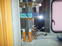 Wir möchten im Bad ein paar zusätzliche Ablagen schaffen, und dafür die runde Ecke links hinten im Bad nutzen, sowie auch das abgeschrägte Stück zwischen beiden Spiegeln über dem Waschbecken. Hat einer ne Ahnung, was hinter der silbernen Plastikverblendung ist? Ich nehme mal an, dass dahinter auch eine Holzplatte ist, aber ob die dann auch abgerundet, direkt dahinter verläuft und ob dahinter Kabel oder etwas anderes verborgen ist, wer weiß darüber Bescheid?