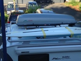 Jetzt würde ich für das ganze Segelzeugs und so gerne noch eine Dachbox montieren. Aufgrund der spezifischen Anforderungen an das Surfzeugs wird diese relativ lang werden müssen - so 2,75-3,10m.