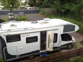 Der Schaden ist rein optisch eigentlich gar nicht so gravierend - ist halt die Kante technisch sehr ungünstig eingedrückt, eine größere Delle im Alkoven und das rechte Fenster kaputt. Ansonsten ist eigentlich nichts passiert. Da man aber komplett Dach und Seite erneuern muss, wird es recht teuer.