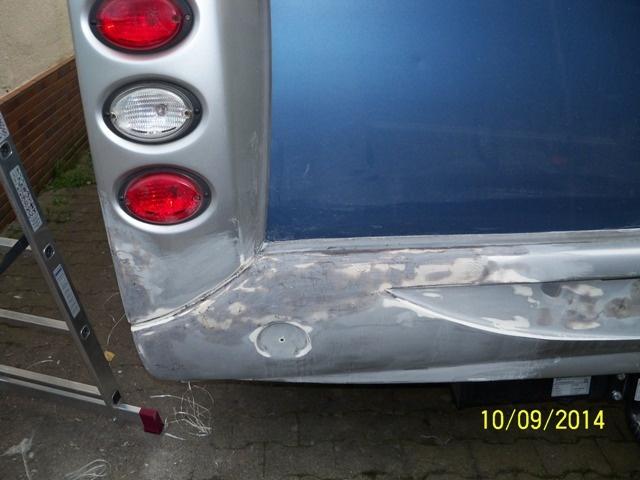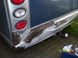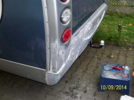 Jetzt habe ich mich an die Ausführungs- Arbeit gemacht, mir mein Wohnmobil Hobby - T 650 FSC vorgenommen und die äußeren Beschädigungen behoben.