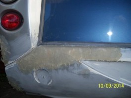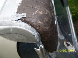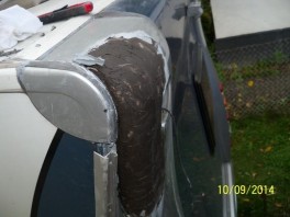 Dann mit Glasfaserspachtel überspachtelt und gleichzeitig eine Glasfasermade mit eingearbeitet.