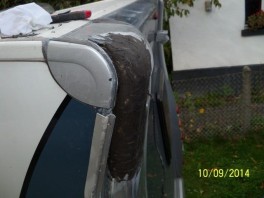 Die beschädigten Stellen an der GFK. – Verkleidung, sind alle mit 80 Schleifpapier angeschliffen worden.