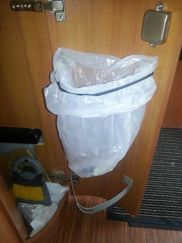 Wie toll ist doch der im Schrank unter dem Fernsehbord vorgesehene Müllbeutelhalter im Van, Bj. ab 2006. ![]()