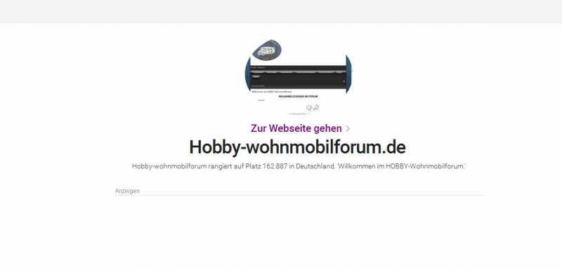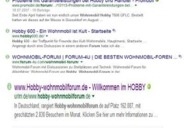 Gebe ich dagegen "hobby-wohnmobilforum" ein, ist die Seite voll mit Ergebnissen, die hierher führen.