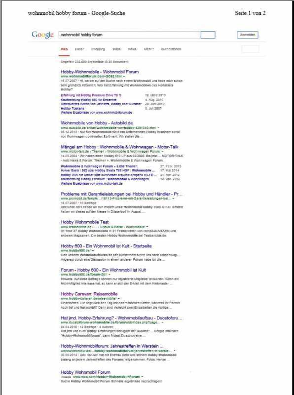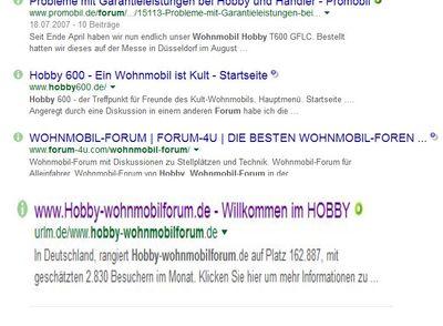 Wenn ich bei Google "hobby-wohnmobilforum" eingebe, habe ich sofort etliche Ergebnisse.