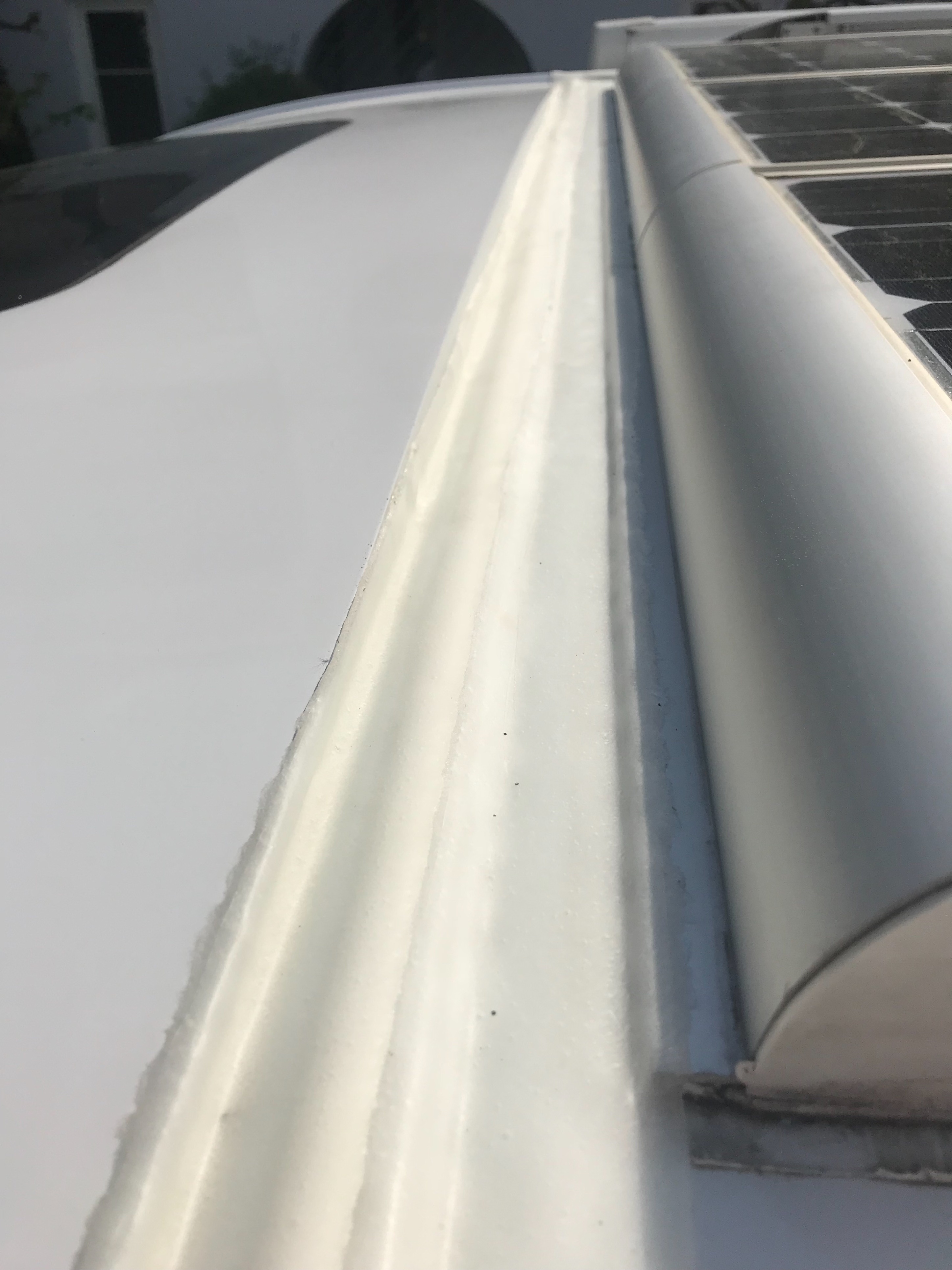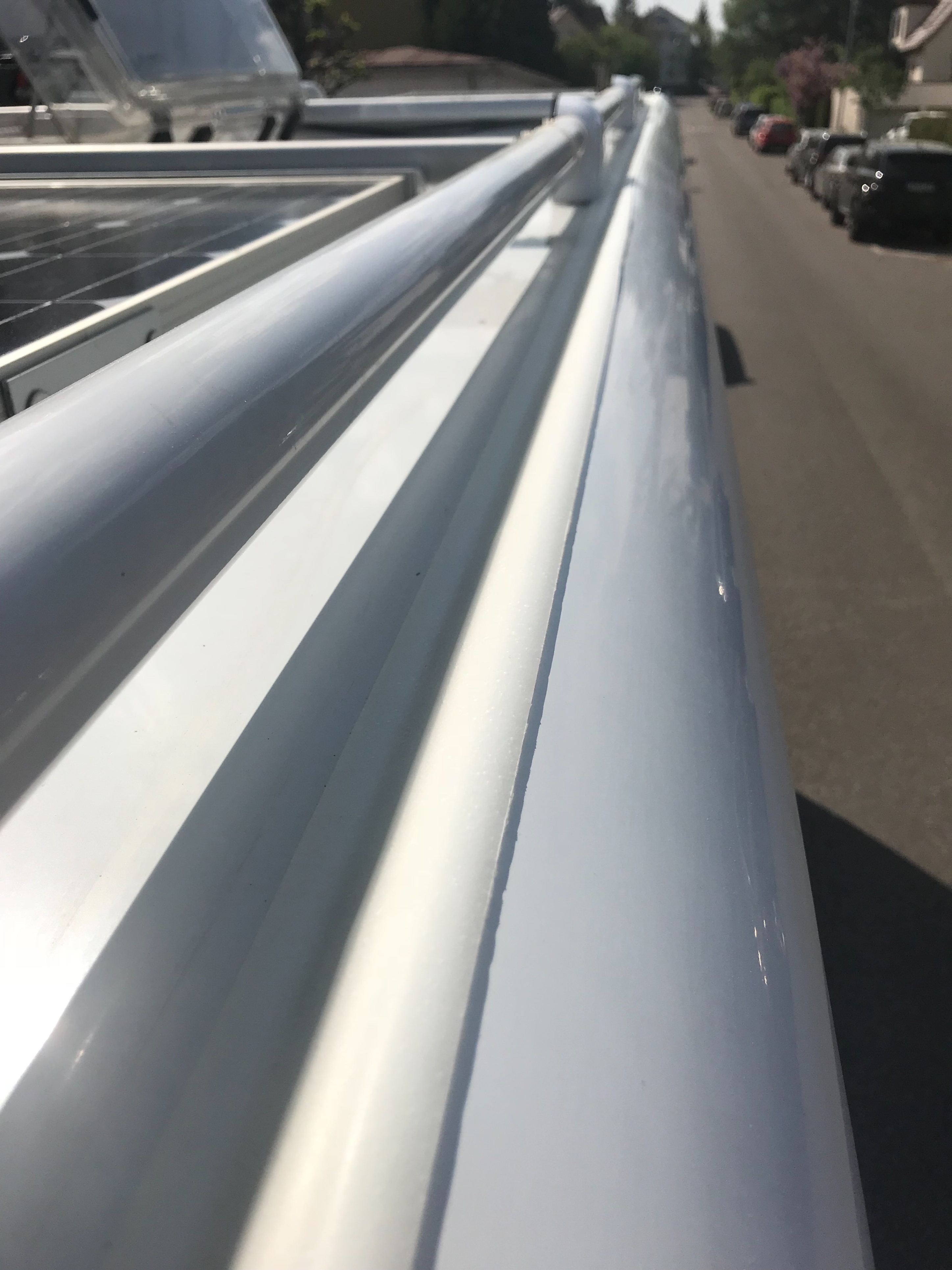 Wie auch bei Uwe, besteht das Dach an unserem Fahrzeug aus einem Mix von Alu und GfK Bauteilen. Bei einer Kontrolle nach dem Winter, konnte ich an ein paar Stellen ein leichtes Ablösen der Dichtnähte erkennen.