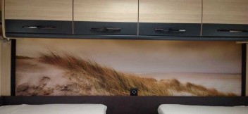 ... das ist eine Leinwand, die zu einem Keilrahmenbild hätte weiter verarbeitet werden können. Wir haben diese Leinwand mit Spezialkleister direkt auf die Rückwand geklebt. Wir können demnächst testen wie fest das ganze klebt - müssen leider nacharbeiten. Wir haben das ganze bei Dämmerlicht verarbeitet und morgens festgestellt, dass sich zwei Blasen gebildet haben :(