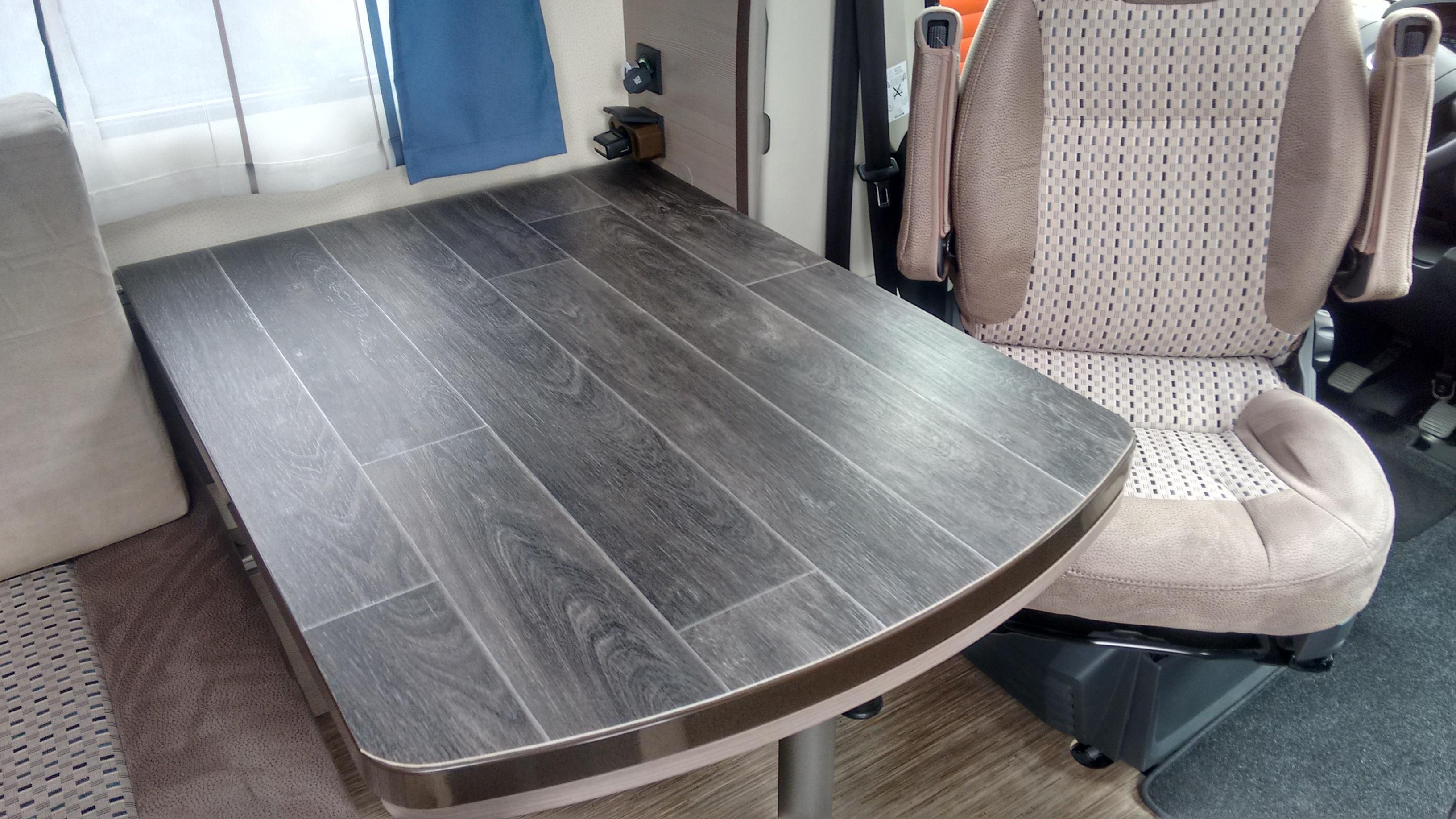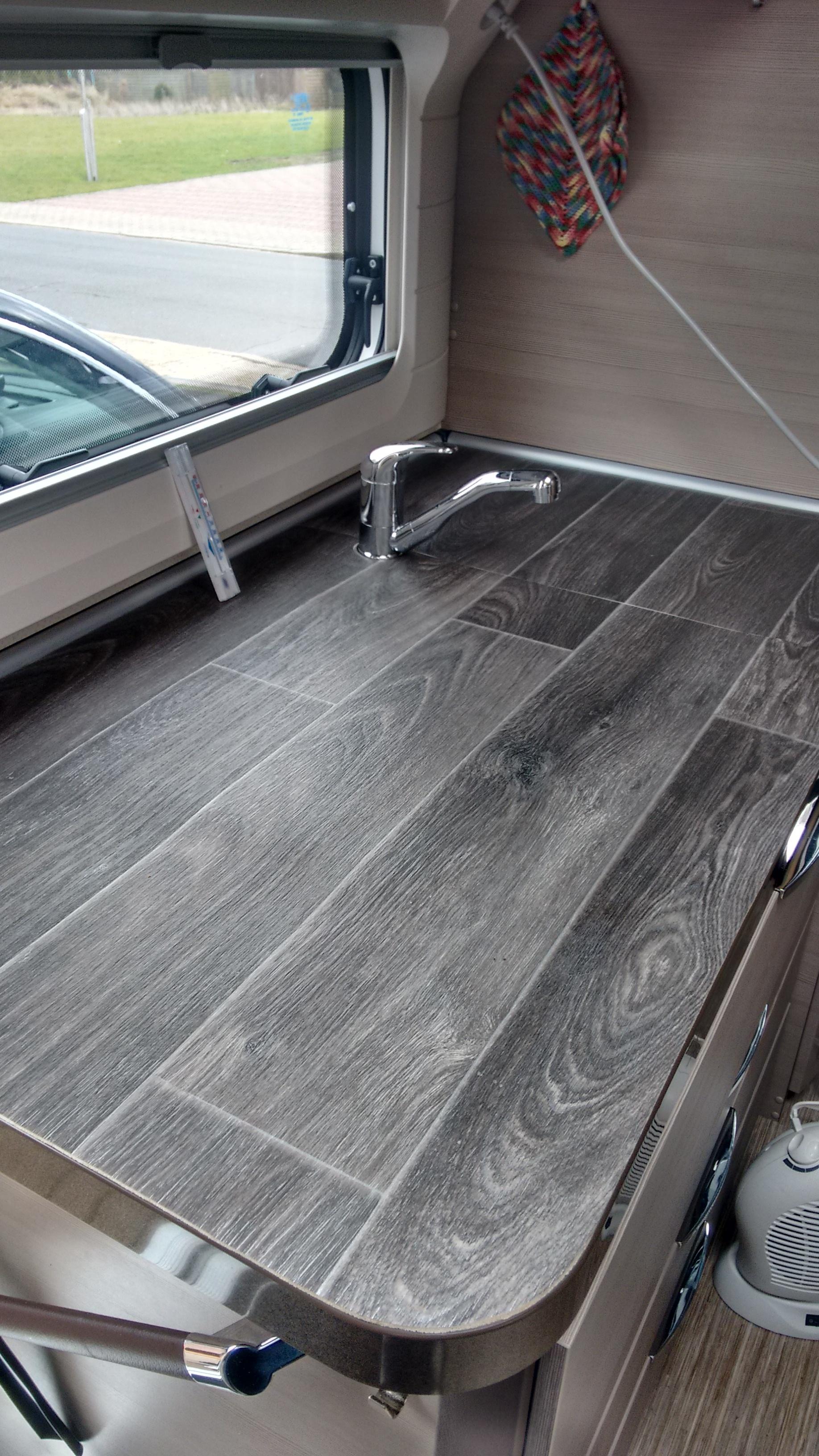 Für uns ist es ein Wohnmobil, das heißt wir „wohnen“ darin und nutzen es auch so. Es wird geduscht und gekocht. Unsere Innenausstattung ist Karelia Pine und die Polster Capri. Was wir nicht kannten, ist das Arbeitsflächen so empfindlich sind. Ein Sandkorn unter einem Teller macht Kratzer die nicht mehr rausgehen. Überlegung ist den Tisch mit Tischfolie, oder ähnlichem zu schützen.