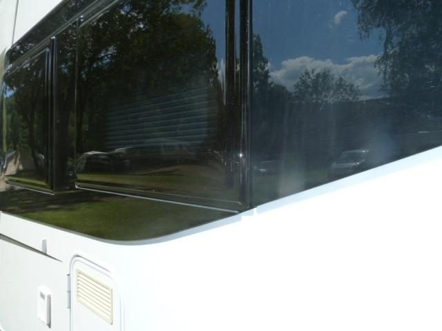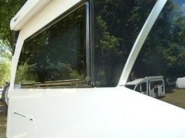 Von der Innenseite sieht man zwei kleine Kunststoffnippel, einen haben wir entfernt und durch zusammendrücken der beiden Scheiben hörte wir die entweichende Luft. Im Halten hat mein Mitarbeiter den entfernten Kunstoffnippel wieder eingesetzt, und siehe da die verformten Scheibe lag absolut perfekt wieder am Gummi an. Gleichzeitig war die perfekte Ansicht auch von außen wieder zu angrenzende Teile wieder da.