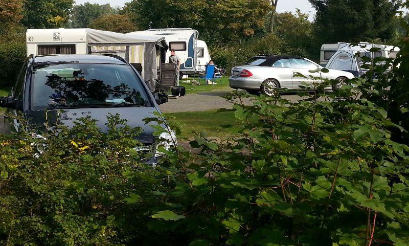 Abfahren wollte ich dann so um 15 Uhr, so konnten wir noch einige Zeit zusammensitzen und über das schöne Wochenende reden. 14.30 Uhr komme ich dann zum Platz und dachte ich sehe nicht richtig, da steht doch tatsächlich ein WoWa dicht an unserem WoMo auf dem Platz, den ich bis 18 Uhr nutzen durfte, davor ein weiterer WoWa mit Zelt und den Daimler in seiner Länge zur Platzmitte gestellt, was eine Gesamtlänge von über ca. 15 m ergab (mit Abstandzur Hecke/ Auto zum Zelt) und durch die gegenüber stehenden Camper zur Ausfahrt sehr eng wurde.