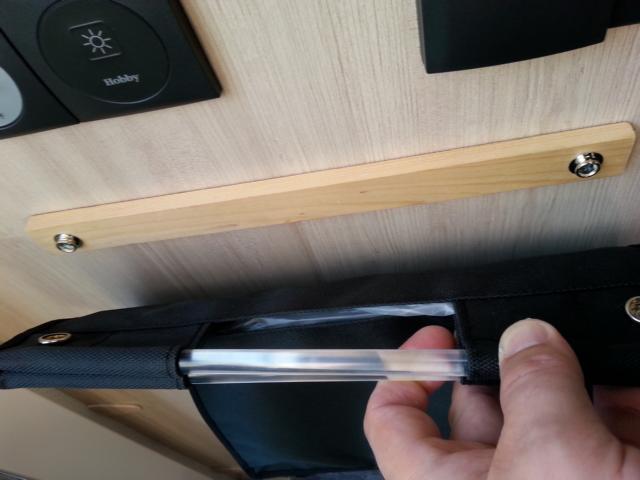 Ich habe mich dazu entschieden, die beiden Druckknöpfe erst auf eine kleine Holzleiste zu schrauben und diese dann mit Spiegel-Klebeband an die Seitenwand des Kühlschranks zu kleben.