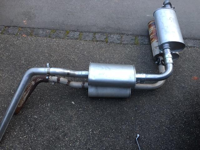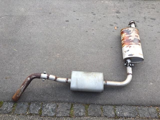 Also stand ich jetzt wieder vor gleichem Problem wie 2010, als sich der Endtopf verabschiedet hatte. Übrigens nicht wegen Rost, sondern aufgrund einer gerissenen und unschweißbaren Falz. Die war auch nur deshalb gerissen, weil die geschweißte AL-KO Lösung auch nicht das gelbe vom Ei ist und das System doch sehr stark unter Spannung steht. Damals hatte ich mir den Endtopf einzeln bestellt und in die Anlage eingeschweißt. Eine sch... Arbeit, da man sich erst eine Schablone bauen muss um die genaue Form des Auspuffsystem zu erhalten. Ansonsten passt der sonst nicht mehr unter das Auto und durch den Rahmen.
