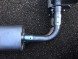 Schweißen? Wollte ich doch nicht und habe mir 2 Doppel-Rohrschellen organisiert. Die werden zum Beispiel auch bei der Nachrüstung von DPF verwendet. Dann noch einen ganz einfachen Auspuff aus dem Zubehör bestellt. Am Montag kam alles an und gestern habe ich die Bastelei dann mal angefangen.