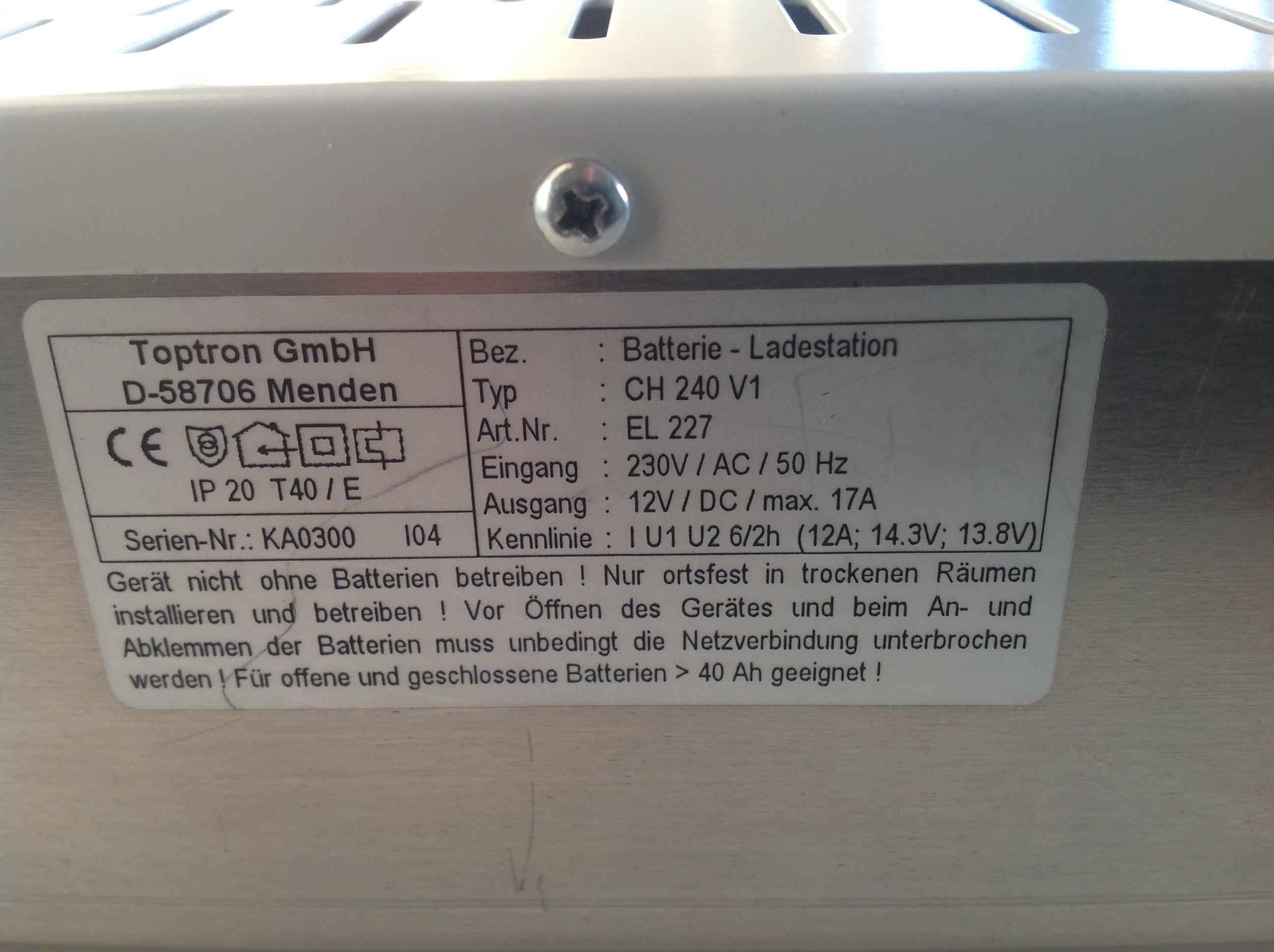 Ladegerät Toptron EL355http://WWW.Niesmann.de