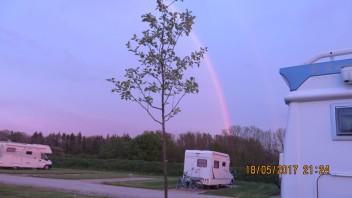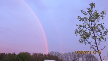 Der Himmel ist dunkel, 2 Regenbogen sind zu sehen, es