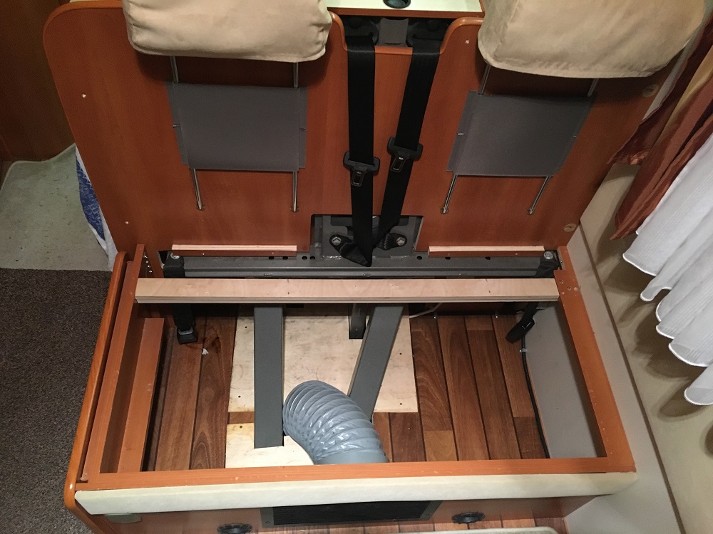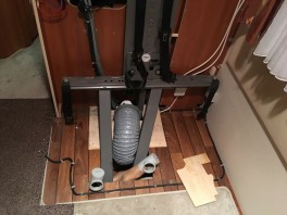 Der Umbau war einfach. Wagen nach lösen von 6 Schrauben herausnehmen. Ein rundes Loch mit der Stichsäge schneiden, in dem die Gasflasche durchfällt. Von unten mit 8 mm Muttern als Abstandshalter eine Aluplatte mit selbstsichernden Muttern anschrauben. 6 Schrauben mit 6 er Gewinde reichen.
