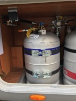 Ich erreiche folgenden Zweck. Auf dem Weg nach Spanien benutze ich meine Repsolflasche. Nach der Überwinterung sorge ich für eine volle Repsolflasche, und benutze für die Heimfahrt meine unbenutzte Alugasflasche die ich als zweite Flasche an Bord hatte und bis dahin nicht benutzte.