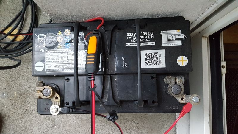 …… muss das Ladegerät dann tunlichst direkt auf/an der Batterie platziert werden…….