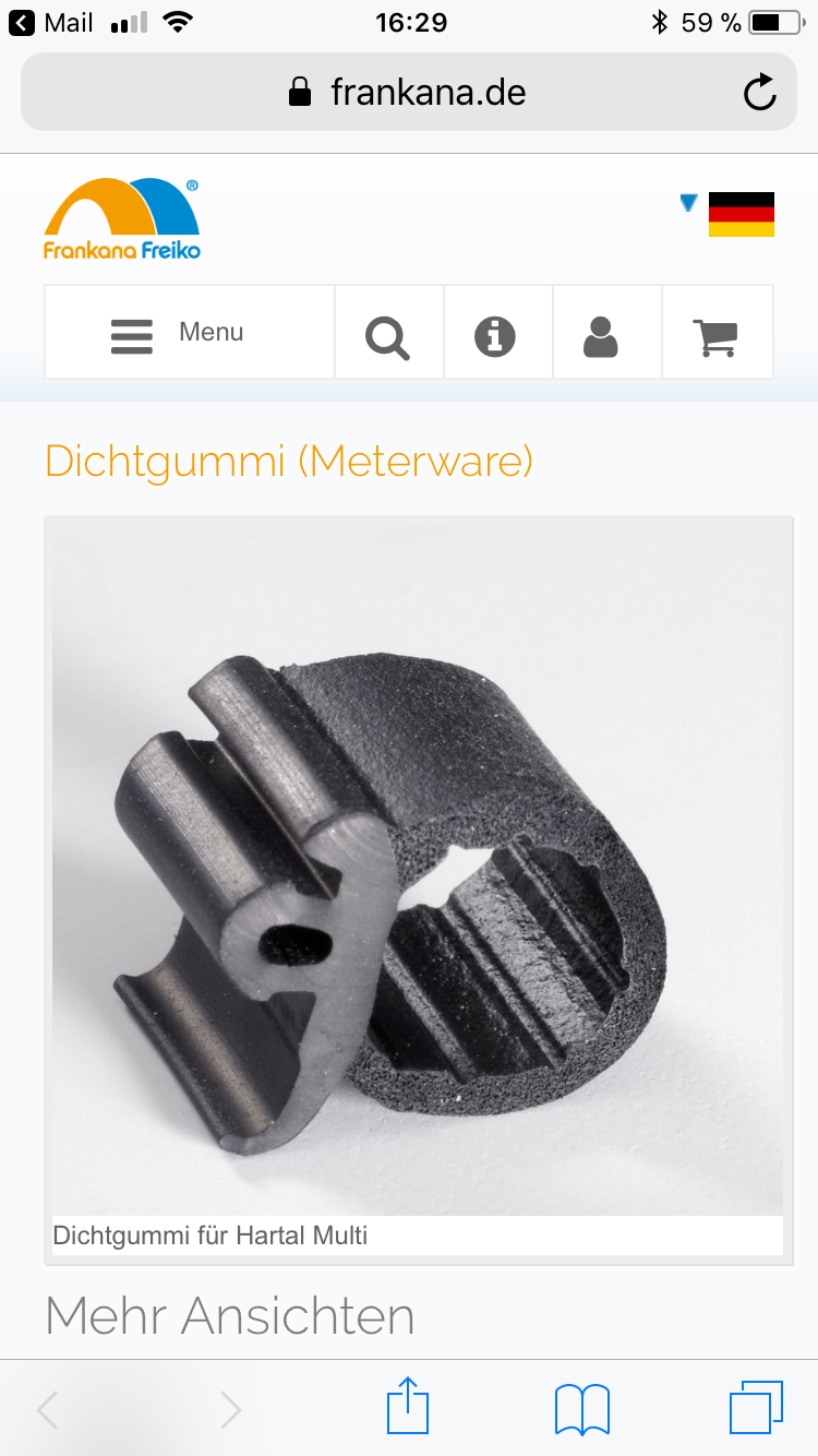 Wegen der Türdichtung kann ich nun Erfolg vermelden und teile die Erfahrung gern. Also, von Hug-Technik und Doepper uns Happich kamen auch Absagen. Fündig geworden bin ich bei Frankana. Dort wird die Dichtung eigentlich als Dachlukendichtung geführt. Ist aber 1:1 dasselbe. Habe gleich 20 Meter bestellt und werde alle Klappen etc. neu machen.