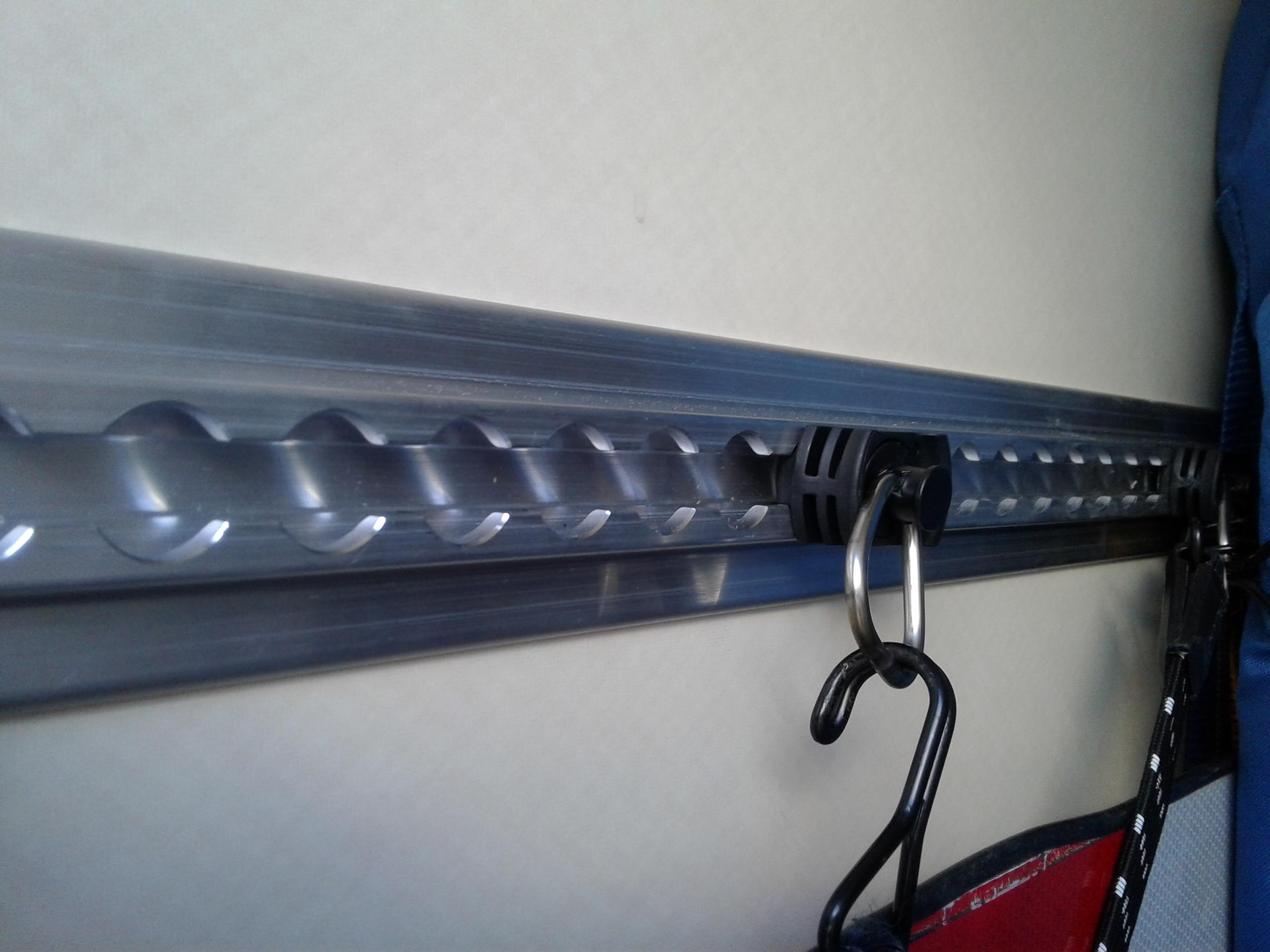ich habe die Garage jetzt auch mit Airline-Schienen organisiert. Anbei ein paar Fotos zur Anregung.Ich habe Flachprofile speziell für die Klebemontage verbaut. Durch die Nuten auf der Rückseite der Schienen wird verhindert, dass man die Kleberschicht bis auf 0 mm völlig runterdrückt. Die Konstruktionskleber benötigen immer eine Mindest-Schichtdicke, damit die mechanischen Kräfte auch aufgenommen werden können und der Kleber nicht von der Fläche abreisst. An den Wänden und speziell an den dünnen Möbelwänden bekommst Du mit kurzen Schrauben (die Wände sind ja nur irgendwas um die 10 mm stark) keinen sicheren Halt.