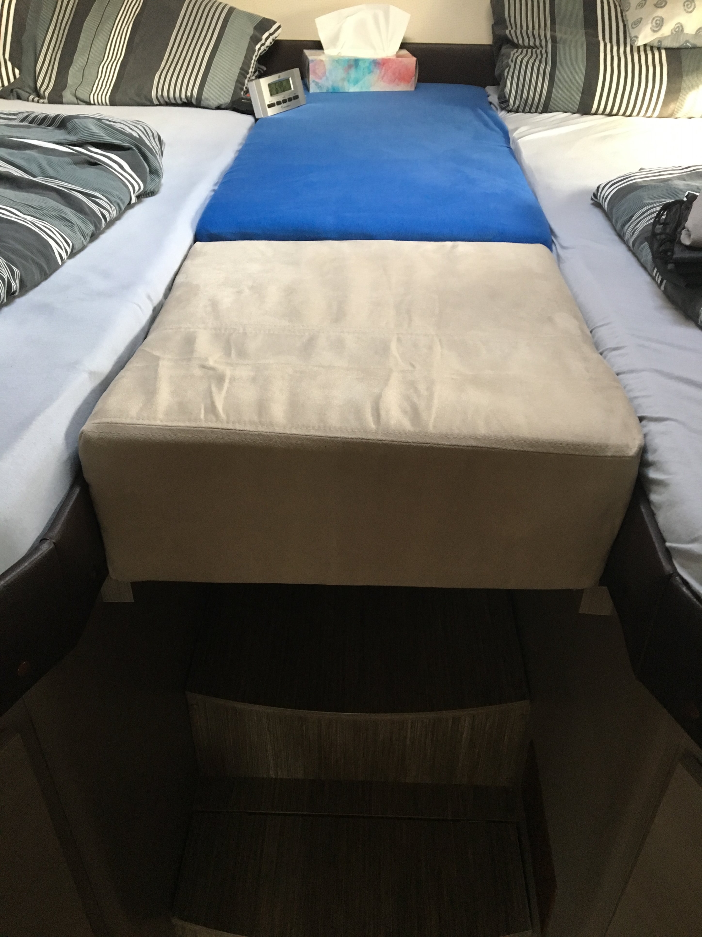 Also für den Mittelteil eine passende Matratze machen lassen, die nur bis zur Kante geht und doch die Mitte perfekt schließt.