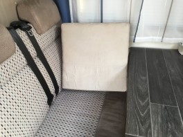 Polster geteilt, bezogen und als Rückenpolster der Sitzbank für zwischendurch.