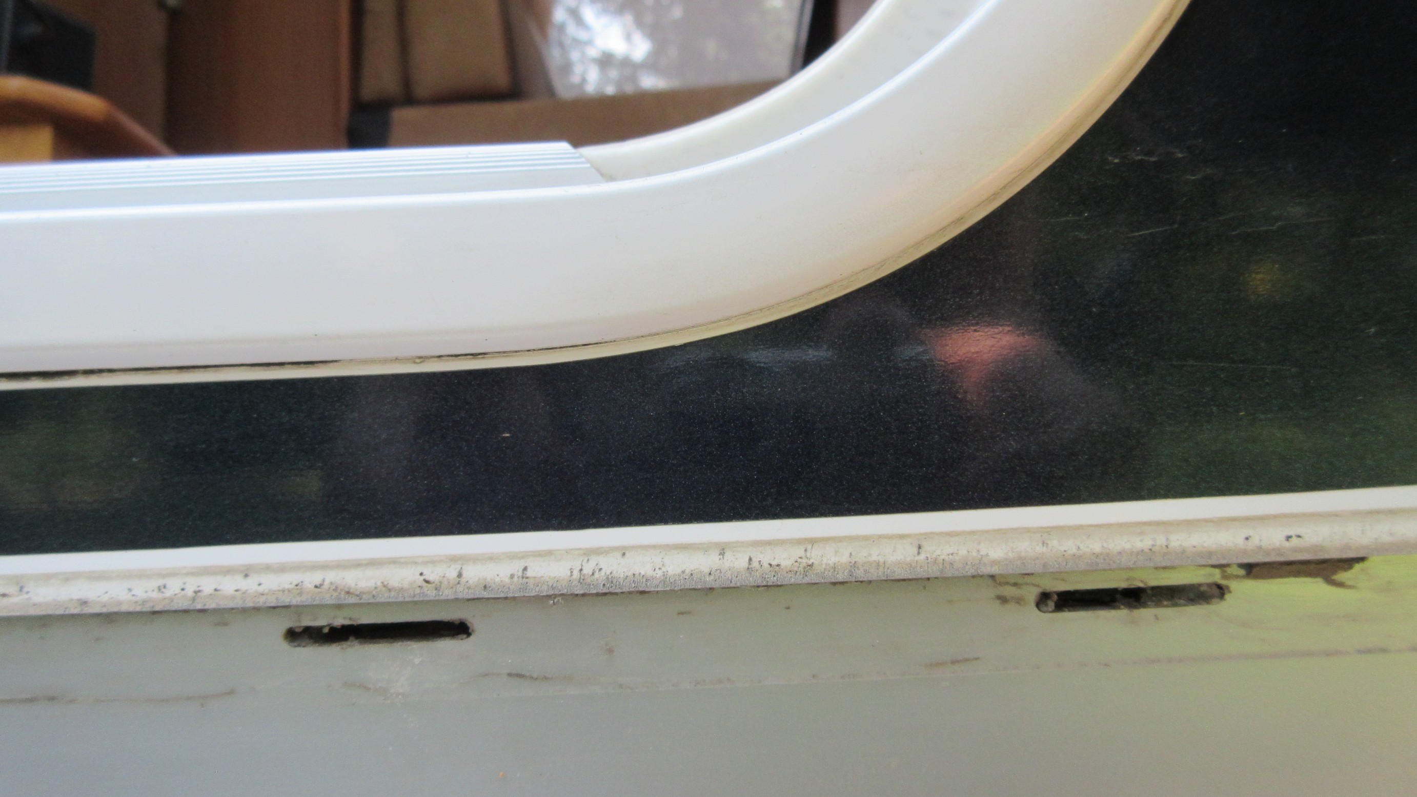 Die Aluseitenwand zeigt an der Unterkante keine Schädigungen.