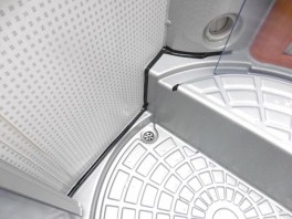 Bei Belastung der Wanne senkt sich die Wanne selbst um wenige Millimeter nach unten und zeigt dann an den gezeigten Stellen (Bild) einen undichten Spalt an der Silikonnaht.