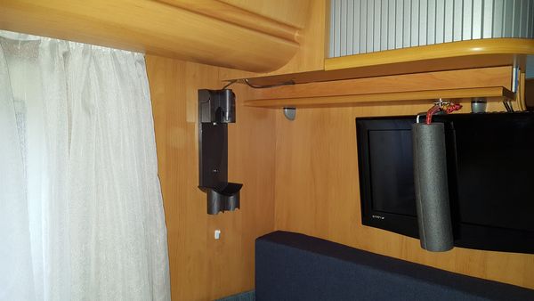 So, der Umbau „Stauraum/ Kleiderschrank“ ist ja jetzt fertig, HIER jetzt musste noch die Ladevorrichtung für den Dyson angebracht werden, so lose rumliegen mit dem Ladekabel, dass wollte ich nicht. In einem kleinen WoMo ist es gar nicht so einfach, einen passenden Platz dafür zu finden, hab ihn aber gefunden, da stört er nicht, ist leicht zu entnehmen und Strom ist in unmittelbarer Nähe.