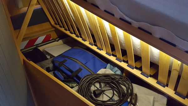 Zu der 1m langen LED Leiste mit AA Batterien noch kurz ein Bild, allerdings bei Tageslicht und aufgeräumt ist auch noch nicht im Stauraum unter dem Bett, kommt noch :laugh: . Leuchtet richtig gut aus
