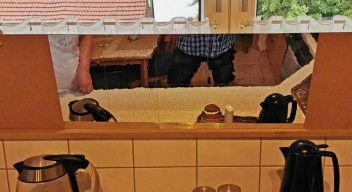 Mit den beiden Utensilien Netzen links & rechts der Spiegelfläche HIER , wird die Holzfläche bestimmt etwas aufgelockert. Habe mal kurz ein Bild gemacht und eins zusammengestellt, wie es dann aussehen soll.