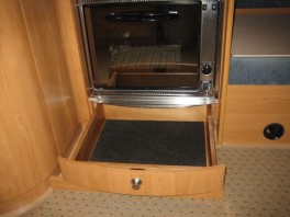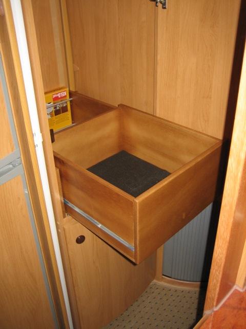 Nachdem ich versprochen habe das ich meine um und einbauten hier im Forum veröffentlichen werde, komme ich diesen versprechen heute nach, bevor der nächste größere umbau erledigt wird ich sag nur soviel Dusche!! Aber noch ist es nicht soweit, vorerst eine meiner umbauten die ich schon vor längerer zeit erledigt habe. Wie es so ist im WoMo man hat immer zuwenig Stauräume, da wir ab Werk einen Gasbackofen einbauen haben lassen, fehlte uns der Platz für Töpfe und ich war am überlegen wo ich diese unterbringen kann. Da fiel mir unter dem Gasbackofen ein fixes Ladenvorderstück auf, ich demontierte dieses und unnötiger nicht genutzter Raum kam zum Vorschein und so habe ich mir eine Lade für Töpfe eingebaut.