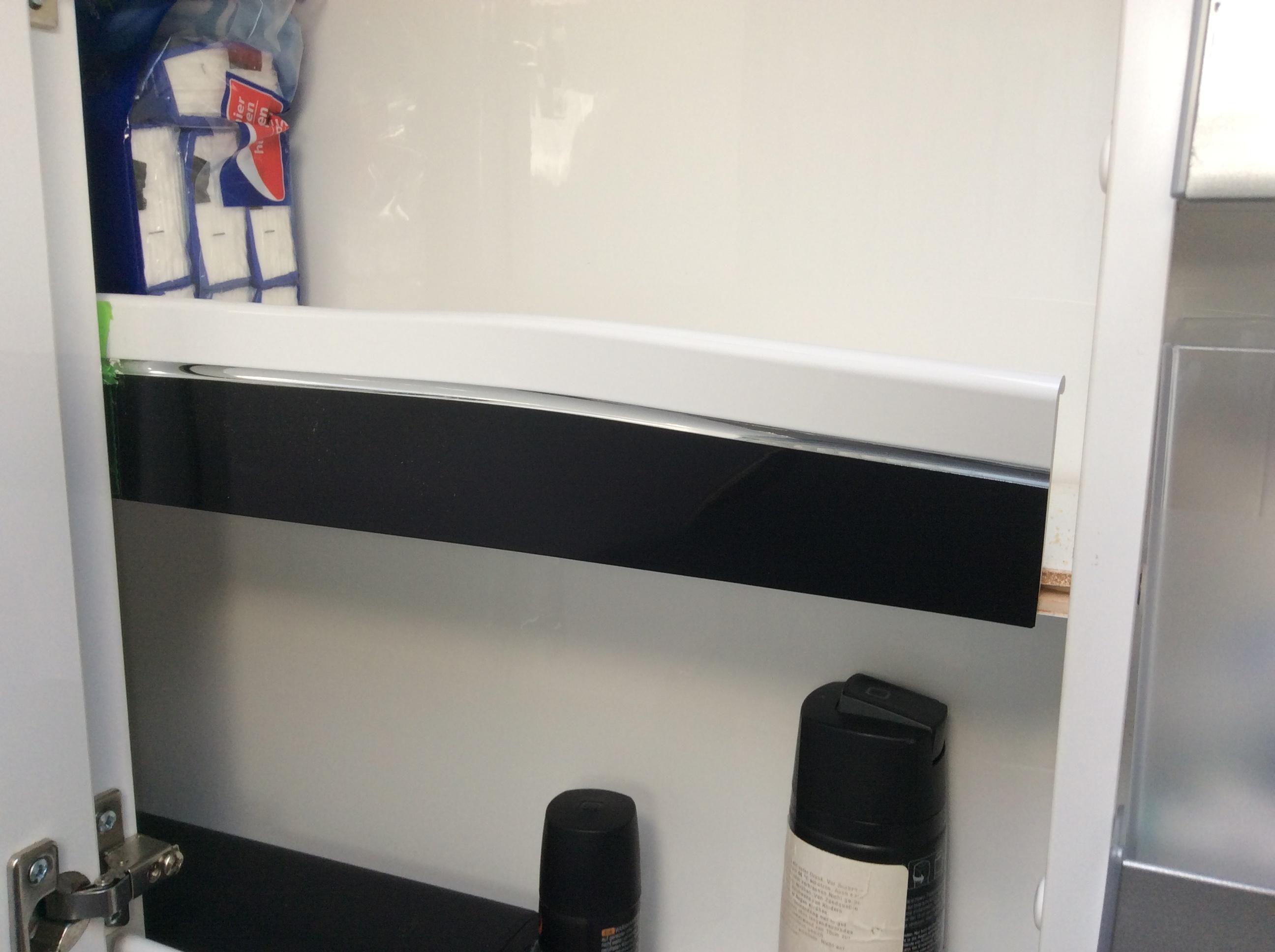 Auf einmal schrumpft die Liste oben am Badschrank und zieht sich aus der Halterung.