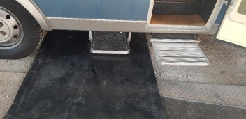 Bin während der Fahrt an etwas drübergerauscht und habe mir durch die veränderte Bodenfreiheit (bedingt durch ausgefahrene Trittstufe) meine Trittstufe zerstört und das weiter hinterliegende Auspuffrohr etwas lädiert.
