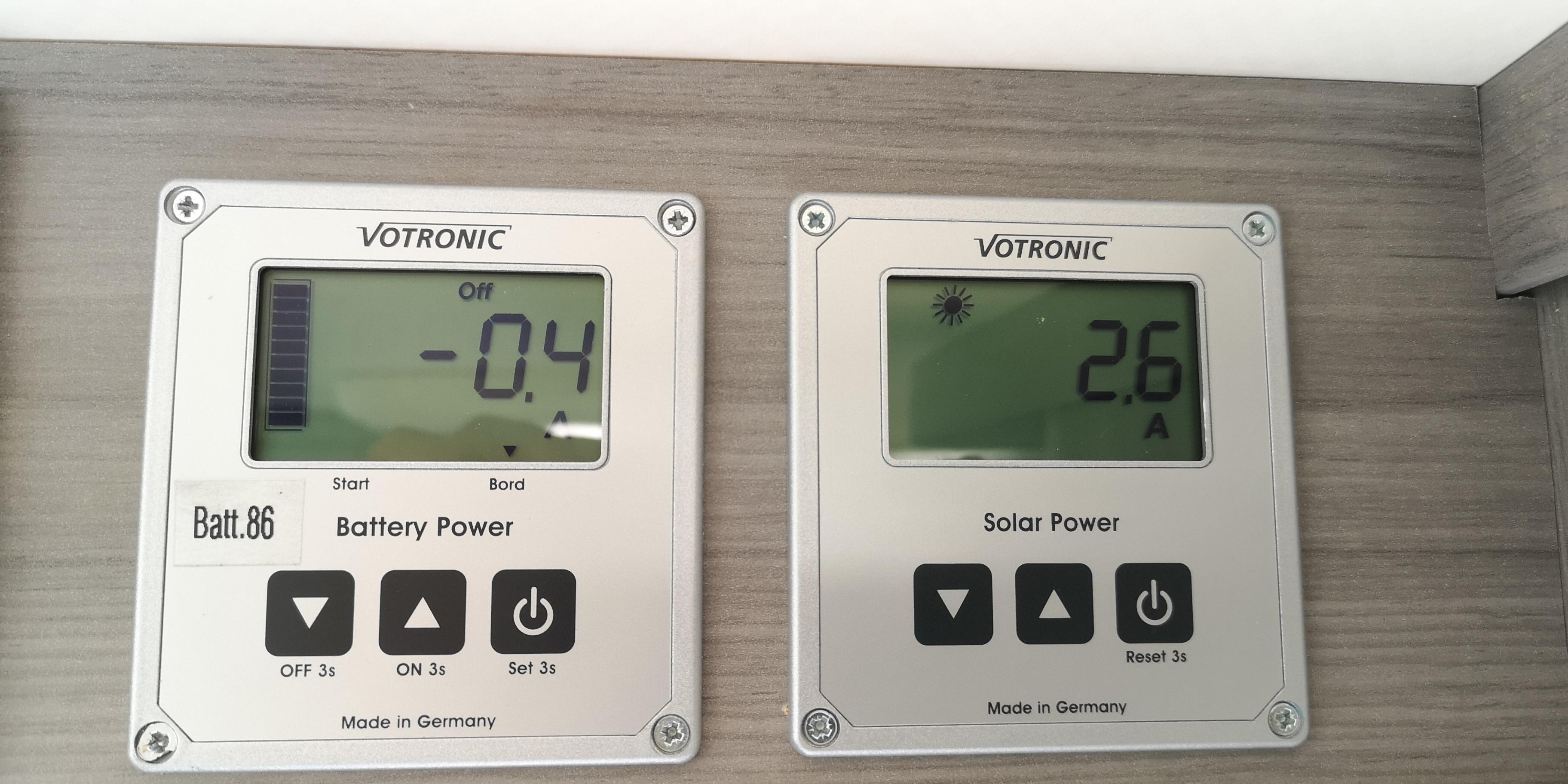 Vorm einschalten des Radios zeigte der batt. Computer die Amp als charge, was als Solar Power erzeugt wurde.