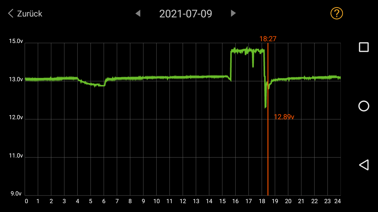 geladene, Aufbaubatterie nach einigen Stunden ein. Demnach kann das so wild nicht sein.Diesen Bild zeigt nun,
