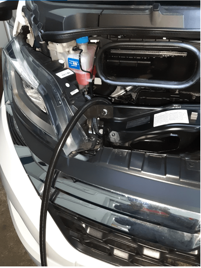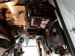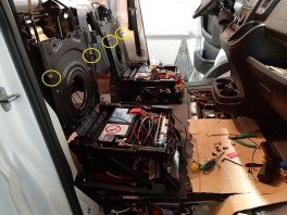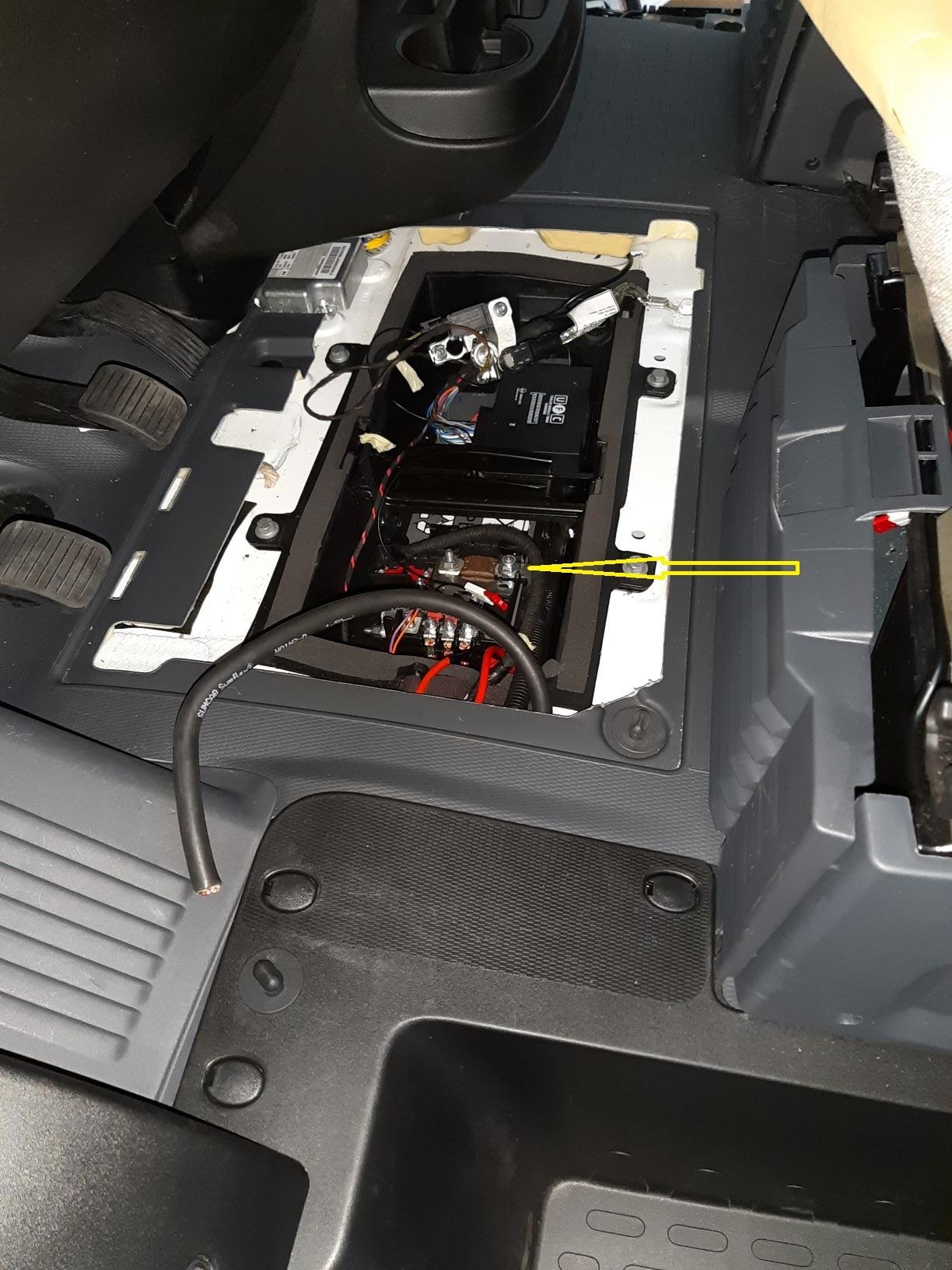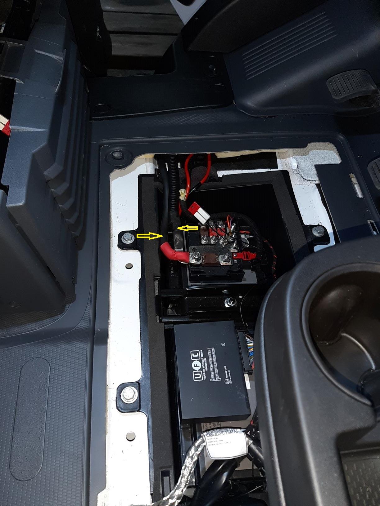 Durch Bohren des Gummis, der das Fahrerhaus vom Motorraum trennt, am Boden, in der Nähe des linken Fußes ein 50 mm. Kabel parallel zum Original von der Lichtmaschine zur Motorbatterie.