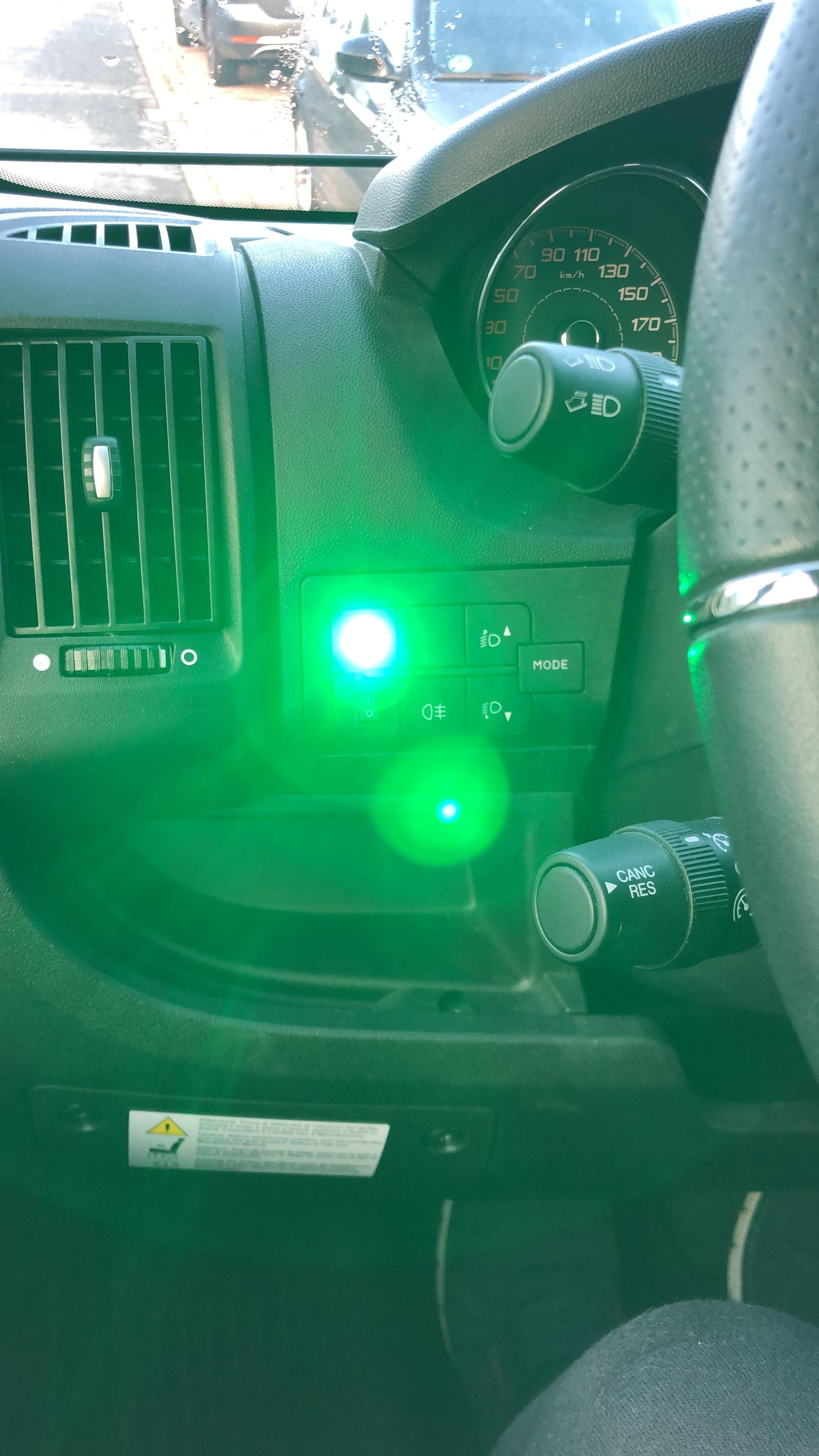 • Die grüne Kontrolle ist vorgeschrieben (hinten wäre gelb). Warum die aber die Stärke eines Lasers hat erschliesst sich mir nicht.