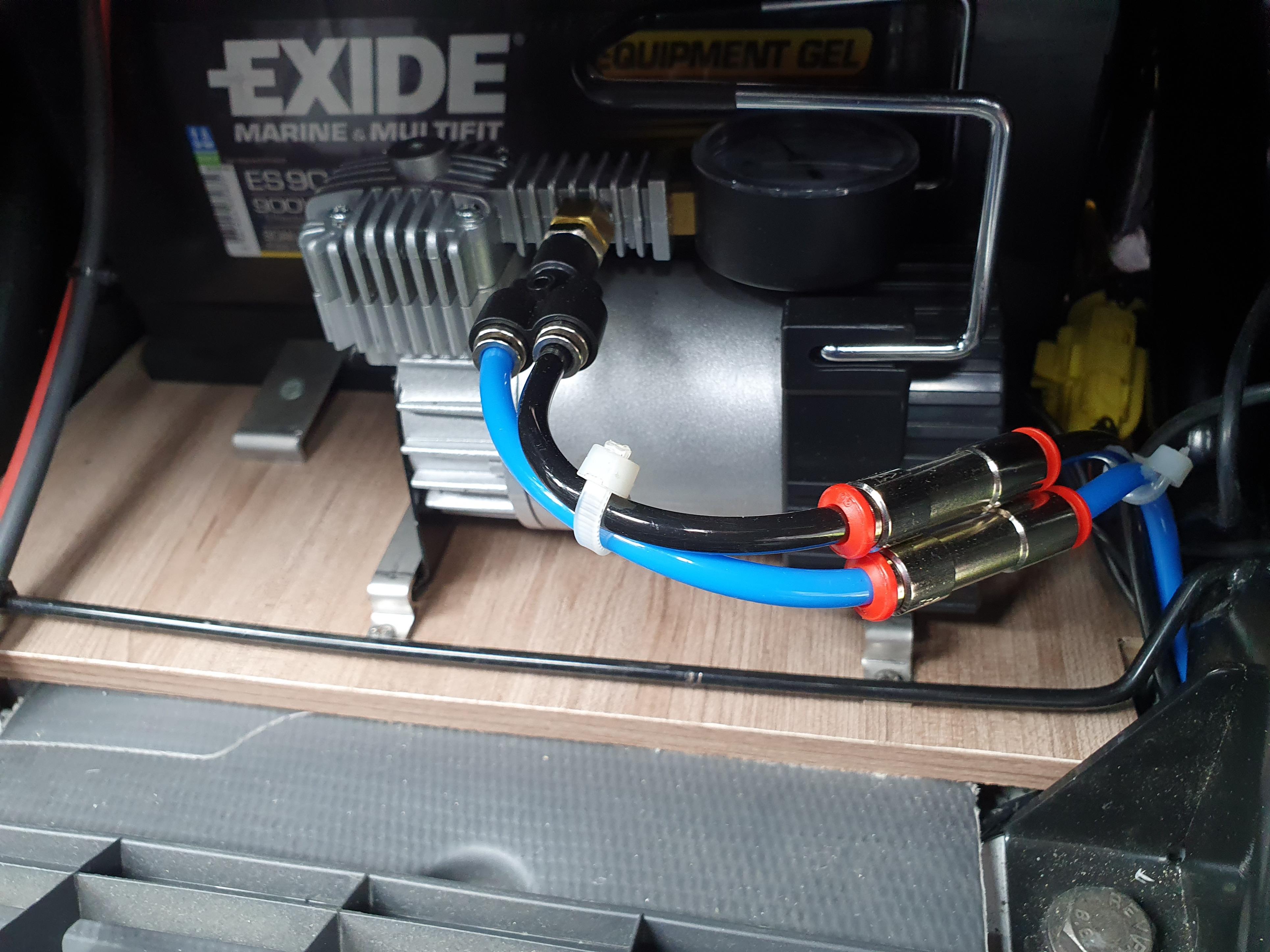 Ich habe den Kompressor unter dem Fahrersitz, vor meiner 2. Bordbatterie eingebaut.