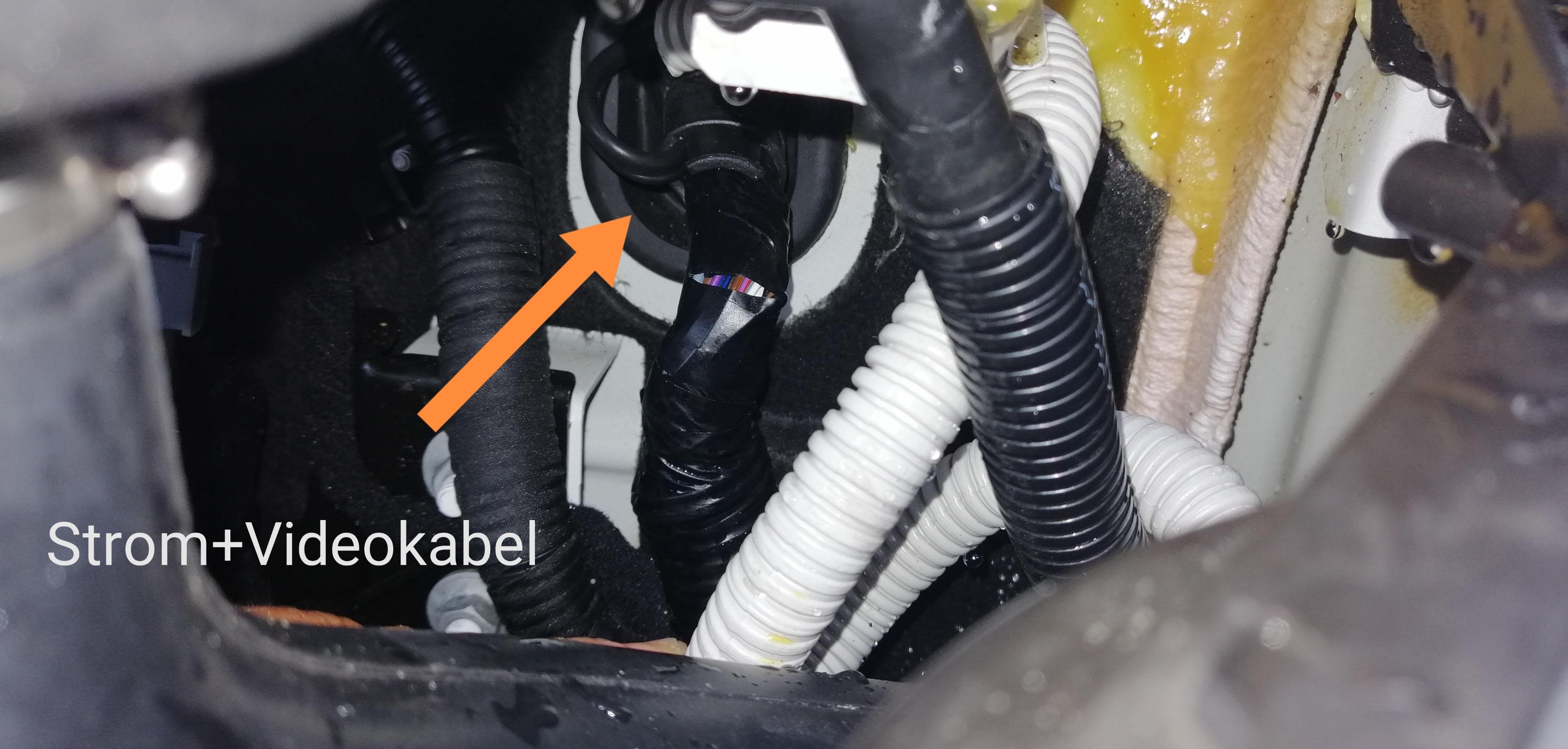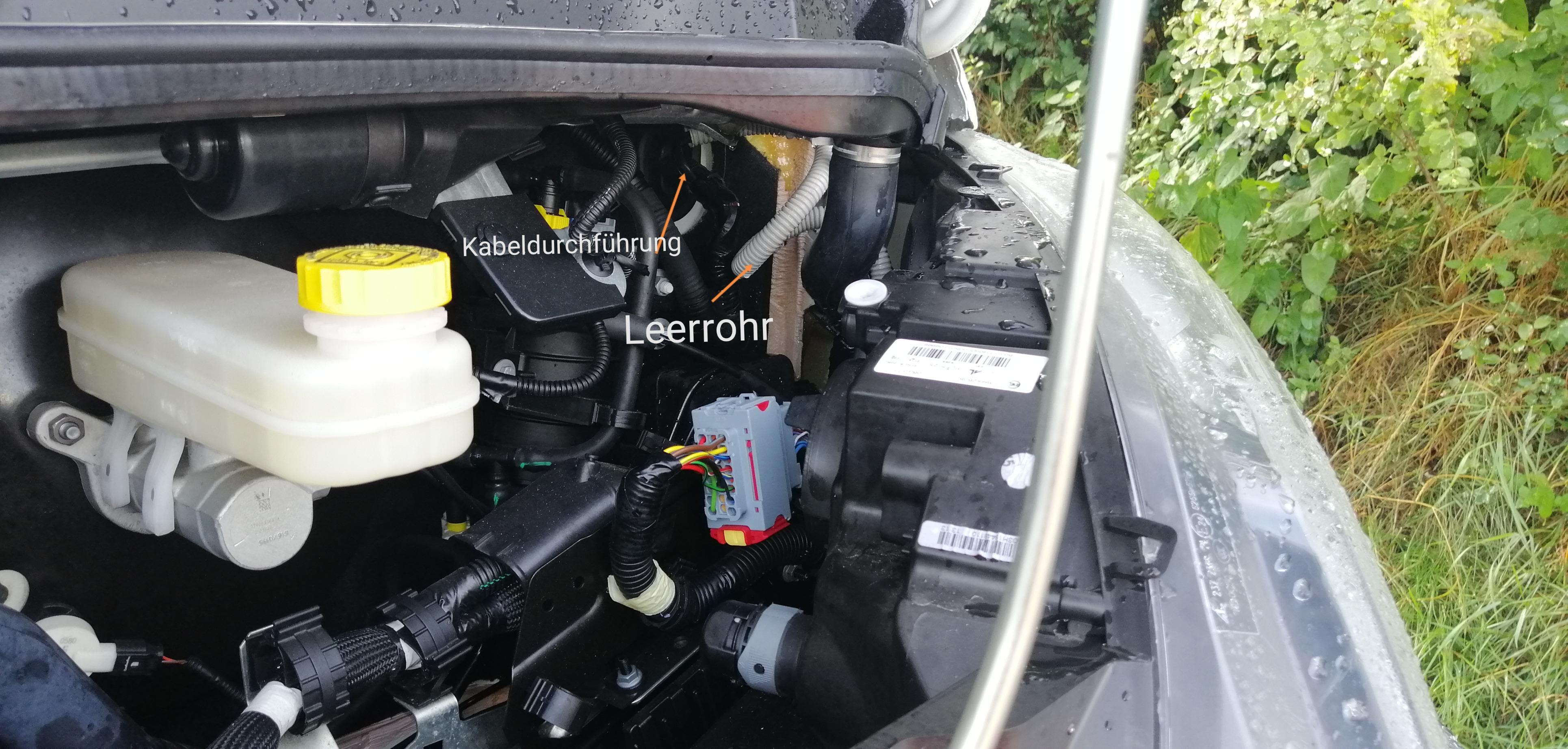 Und anschliessen.Im Motorraum sind die Kabel in einem Leerrohr verlegt.