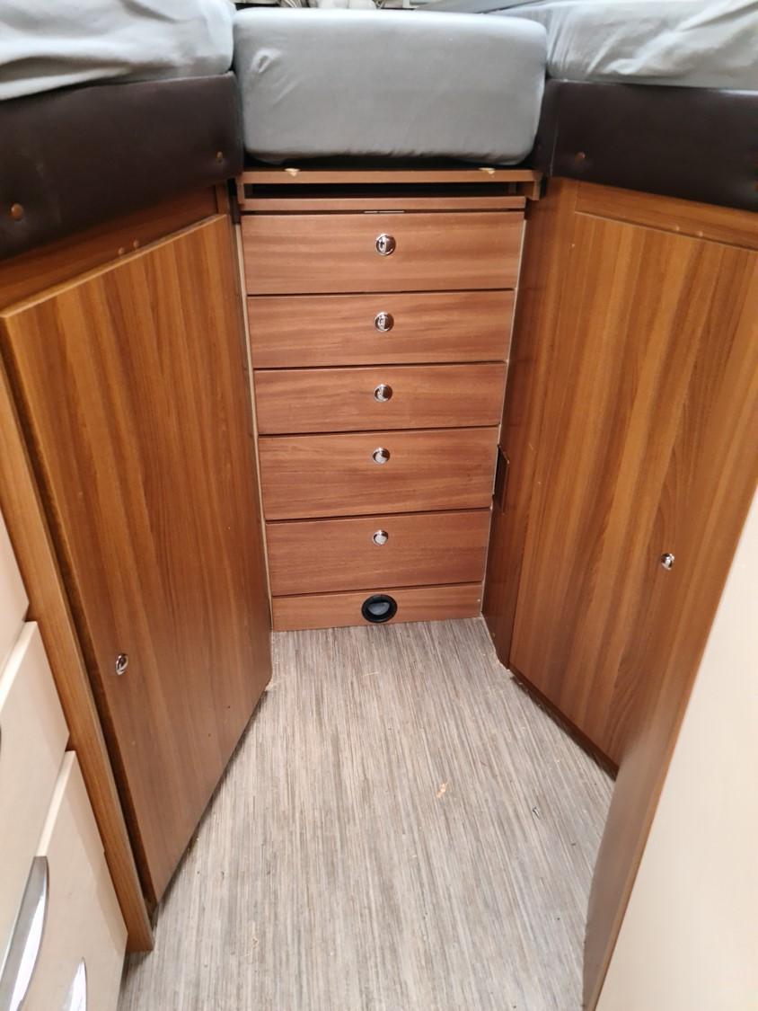 Da wir in unserem Optima V65 GE grundsätzlich nur mit der Bettverbreiterung unterwegs sind, habe ich mich über den verschenkten Raum an und über der Treppe geärgert.