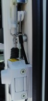 Was hab ich gemacht? Den Aktuator links neben dem HeoLock in den Schaum der Aufbautür eingesenkt.