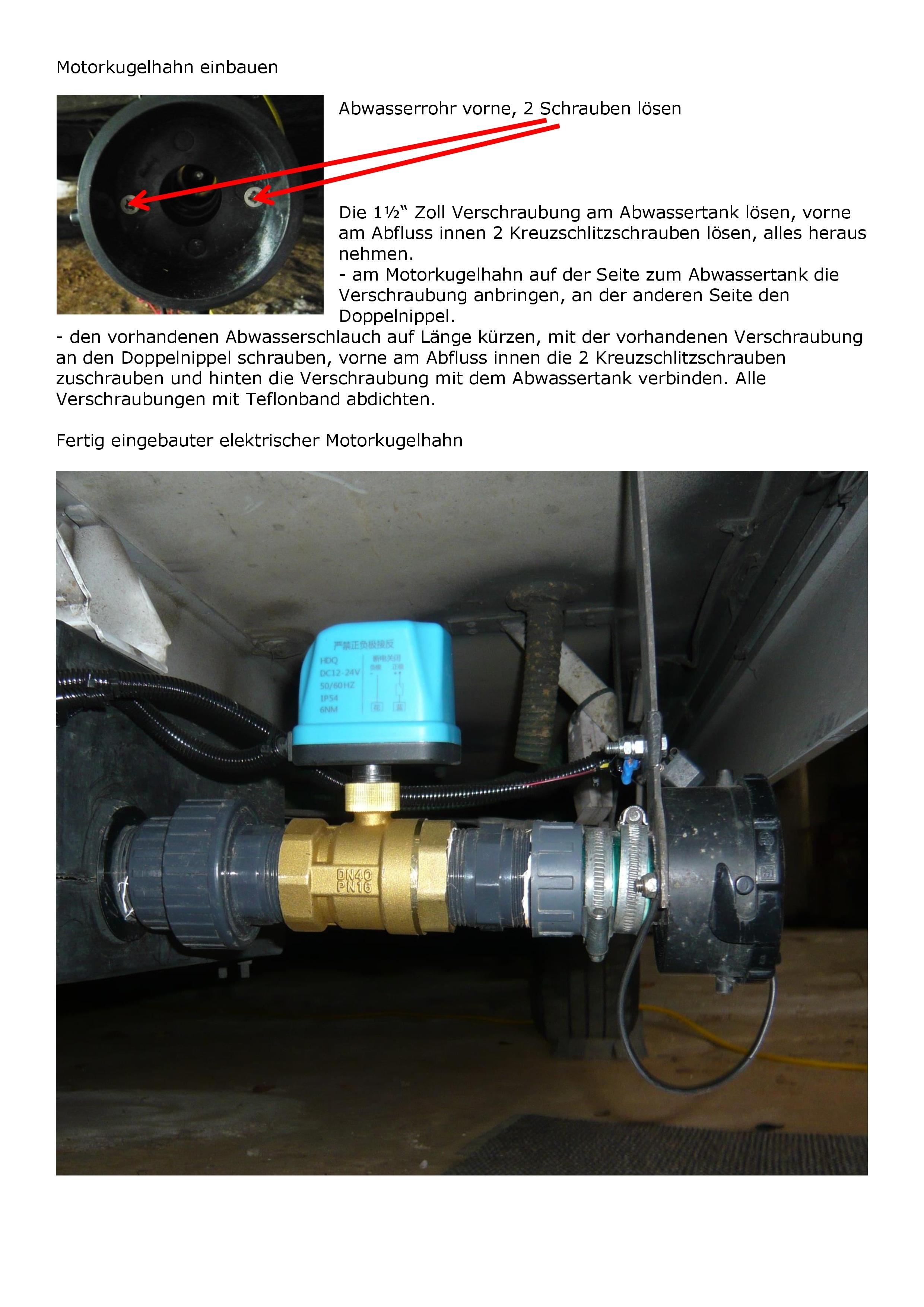 Da ich den Abwassertank nicht öffnen wollte um das mechanische Abwasserventil auszubauen, habe ich alles drin gelassen, nach Fertigstellung muss das mechanische Ventil dauerhaft offen bleiben.